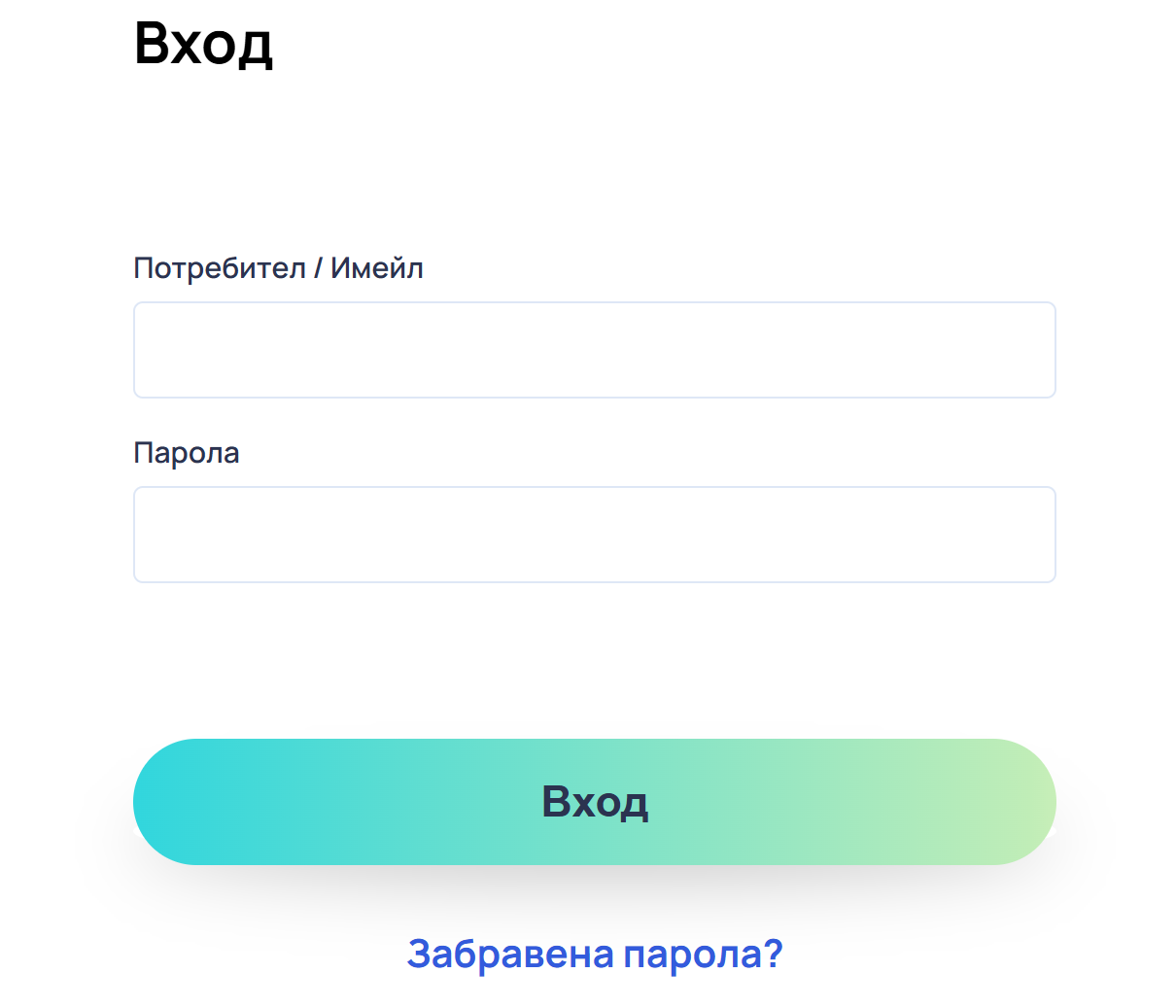 За вход в системата, моля използвайте потребителското име и паролата, предоставени от нашия екип. Отворете браузър на устройството, от което искате да достъпите системата, въведете данните си. Може да използвате имейл или потребителско име.