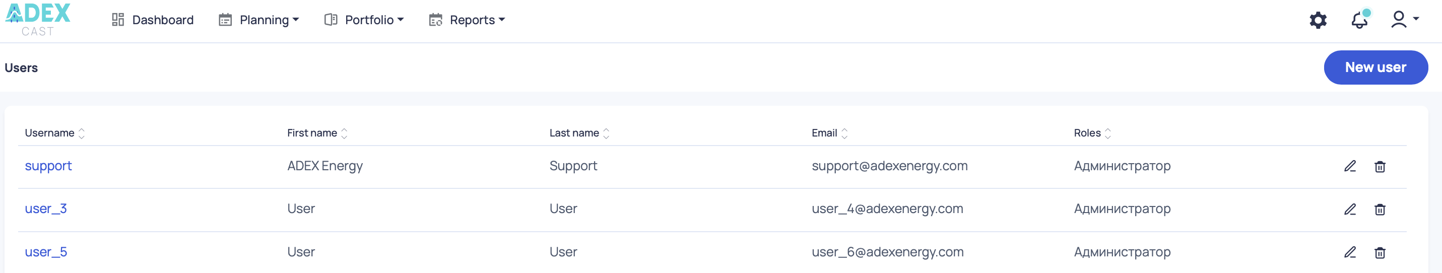 The "Users" button provides up-to-date information of all existing users. It also allows the administrators to modify and/or delete relevant user data.