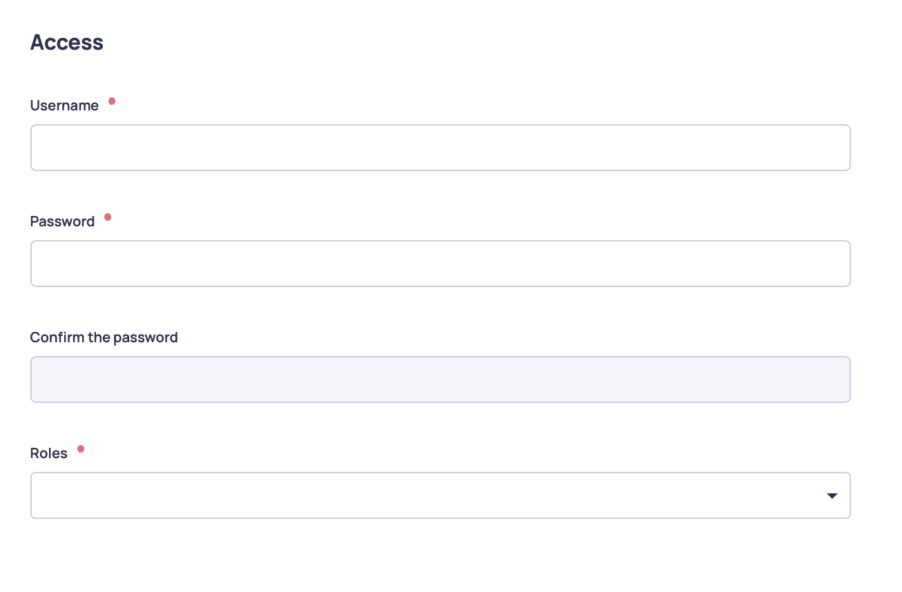 The access data is filled in with the desired username and password, and the role of the created profile is also specified.